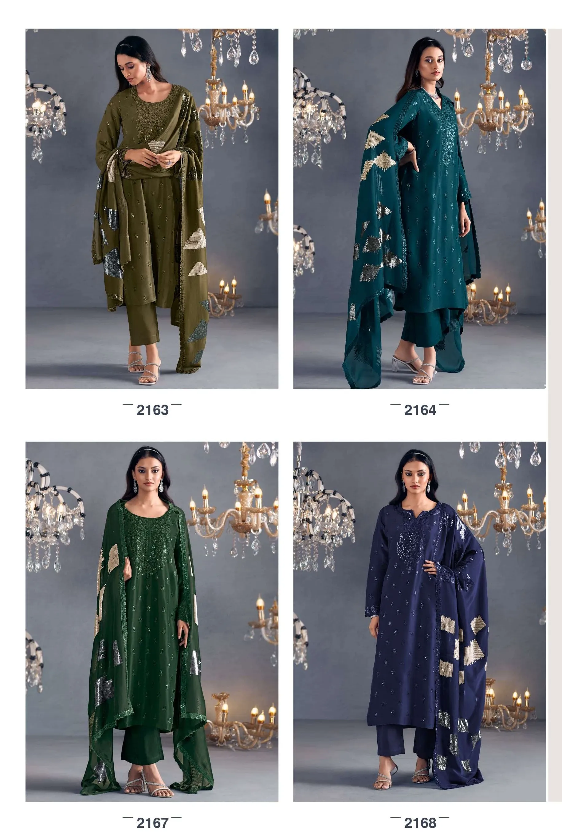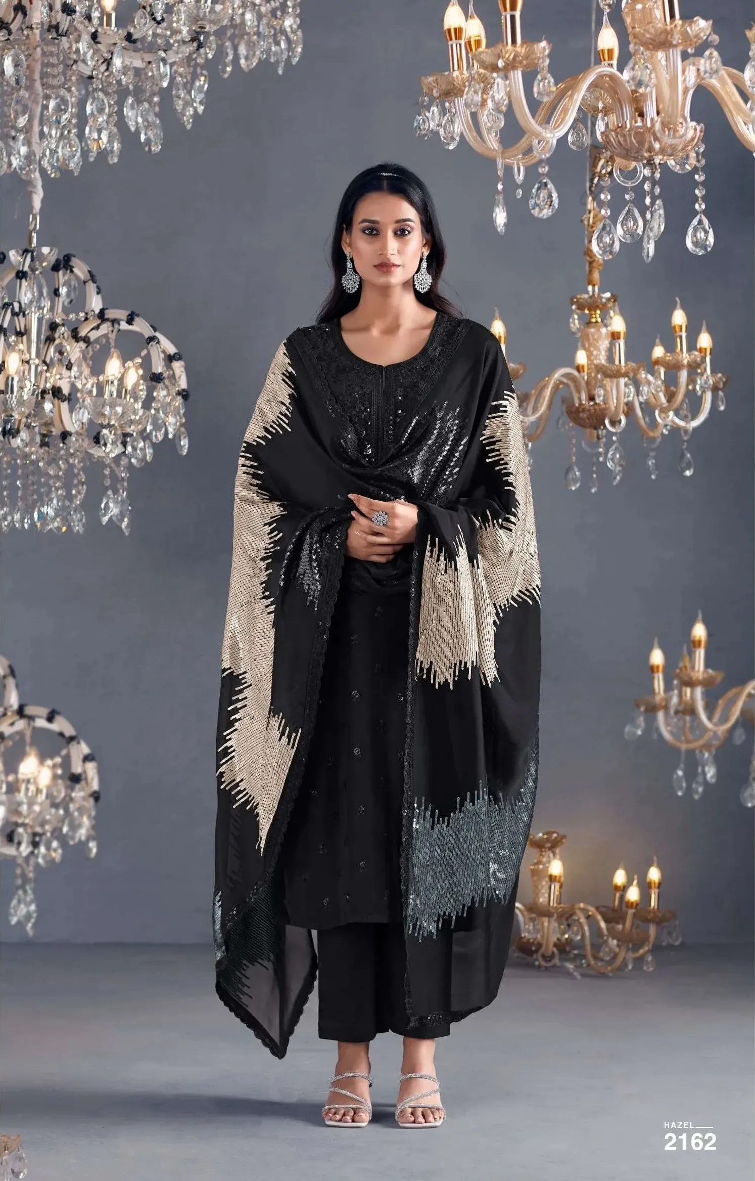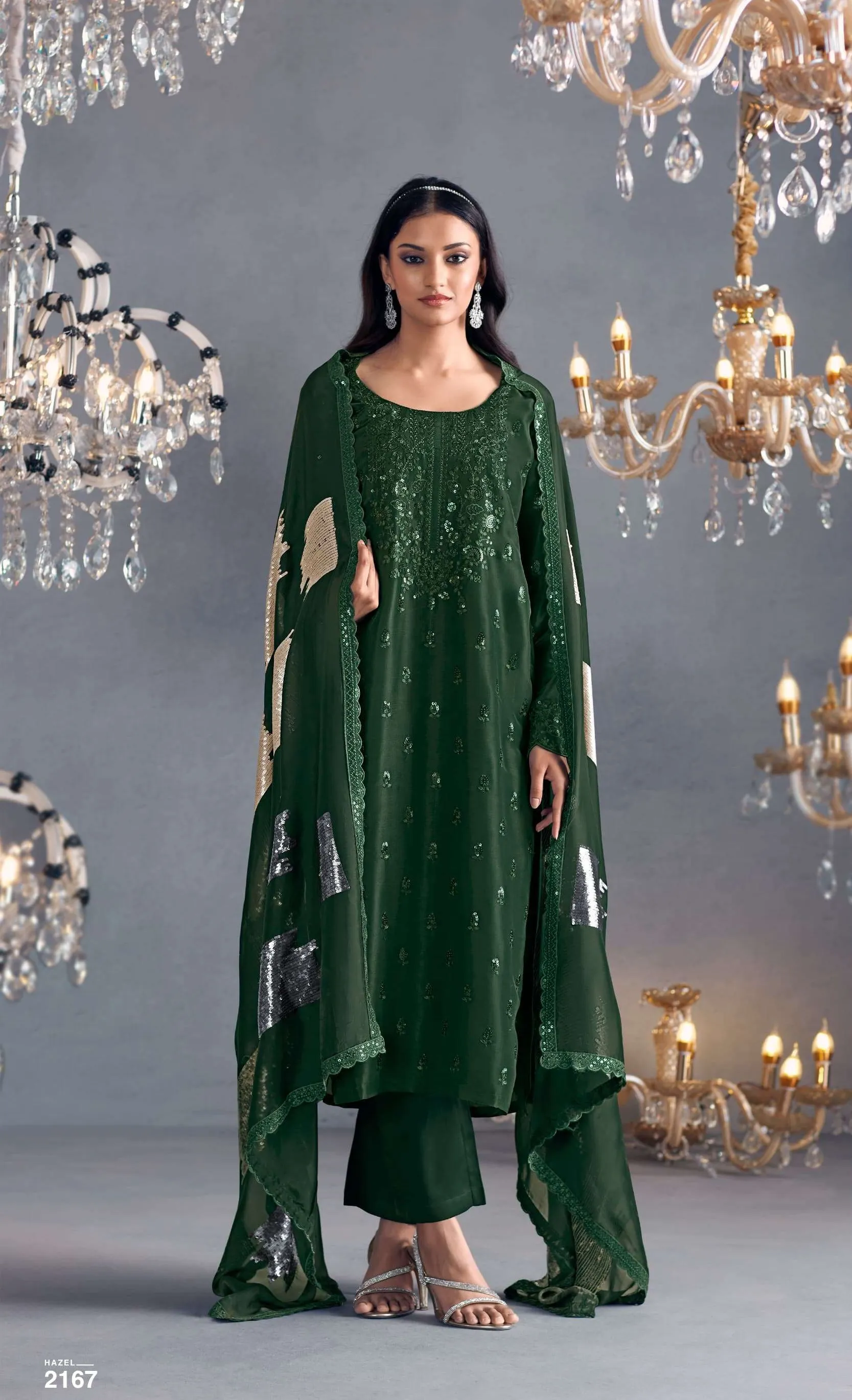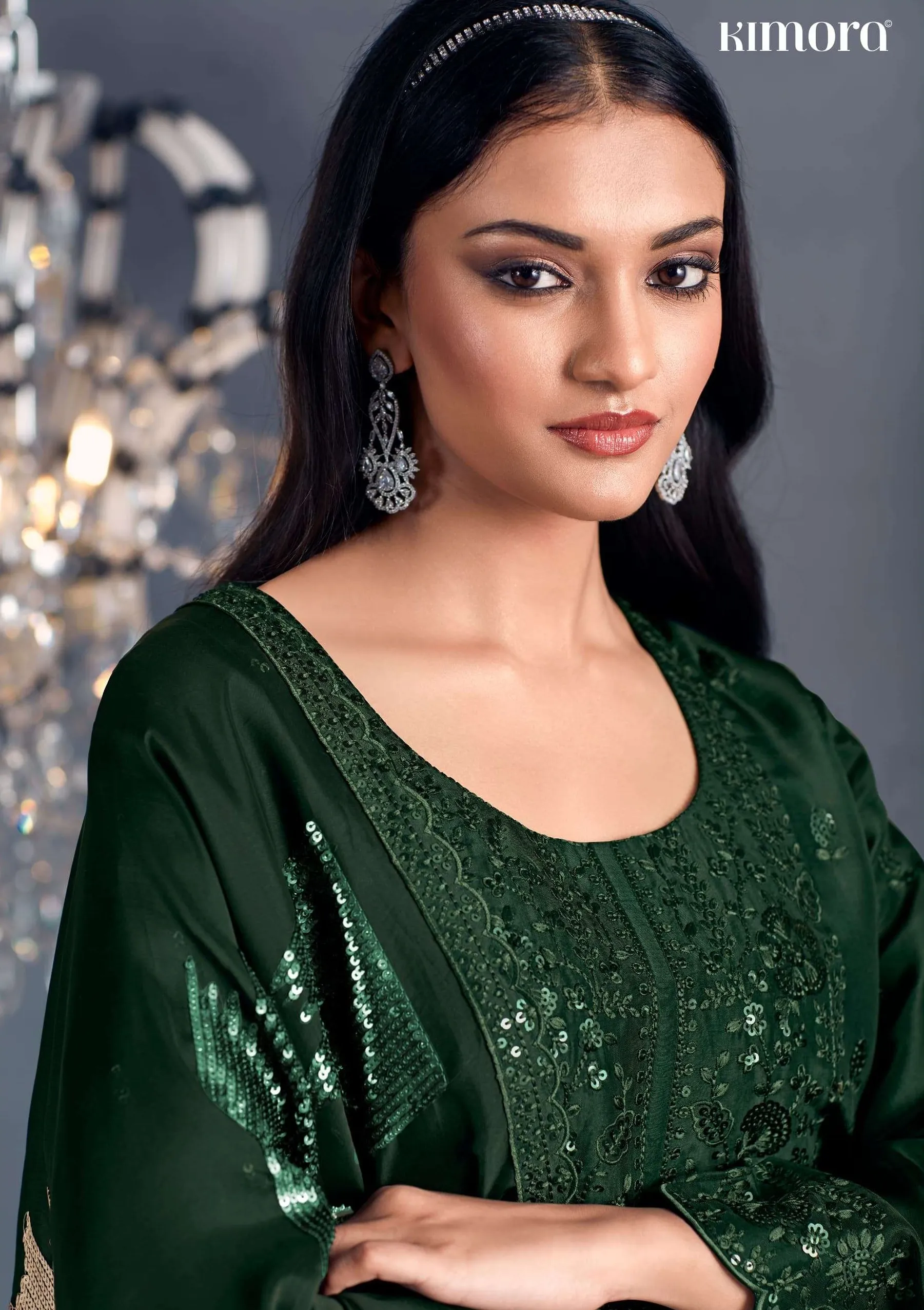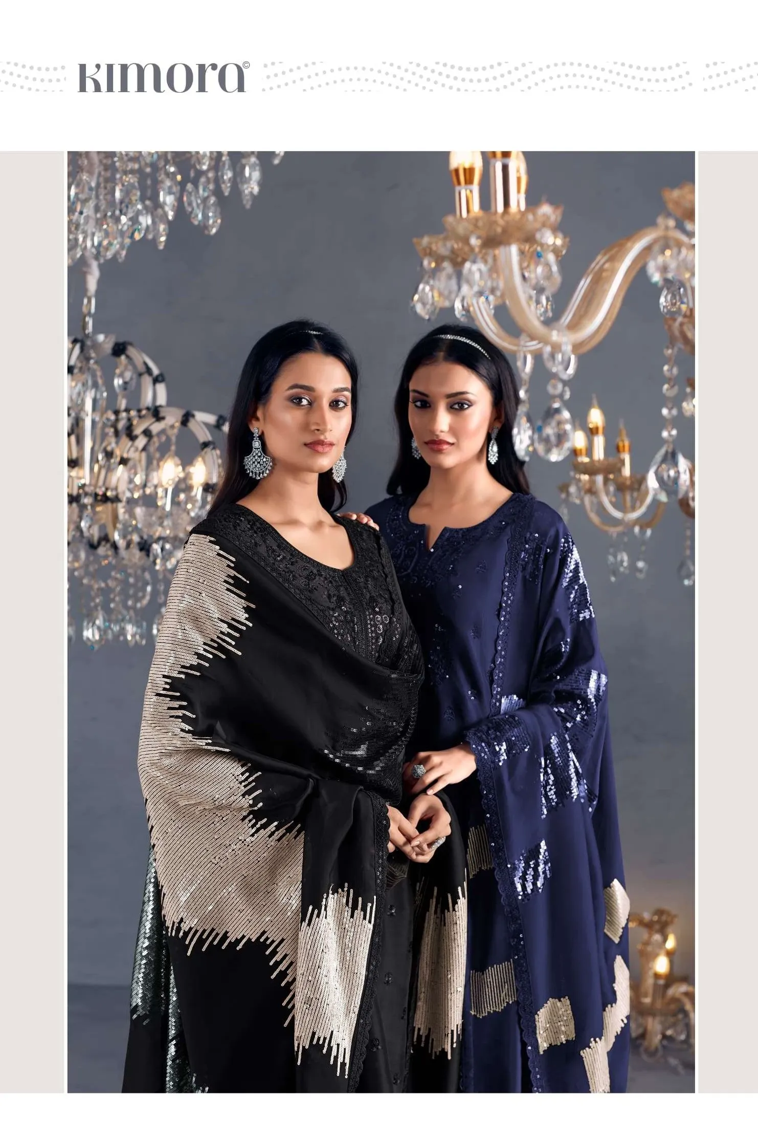Pure Russian silk with toner thread & sequins embroidery, Scalloped embroidery on sleeves
