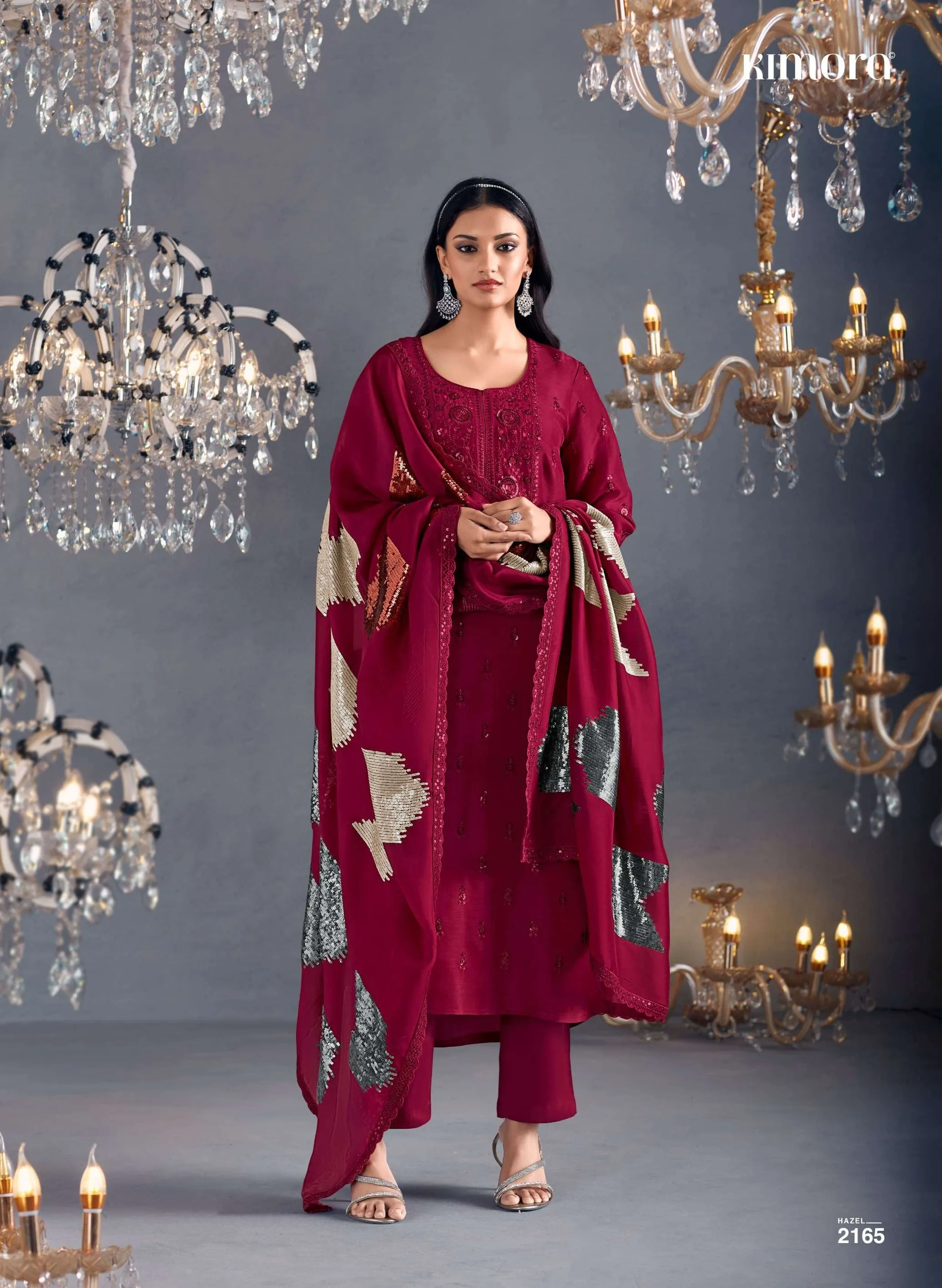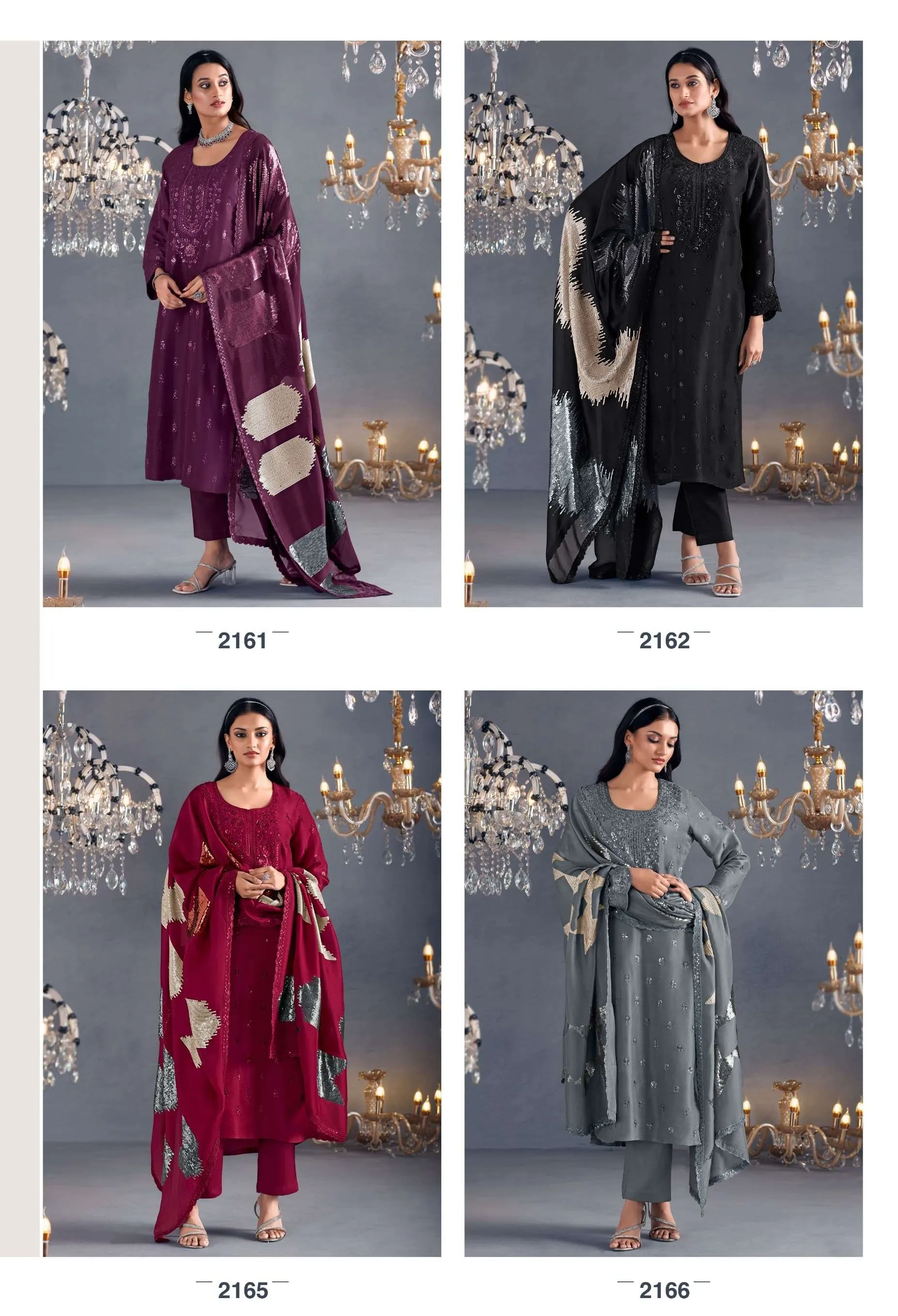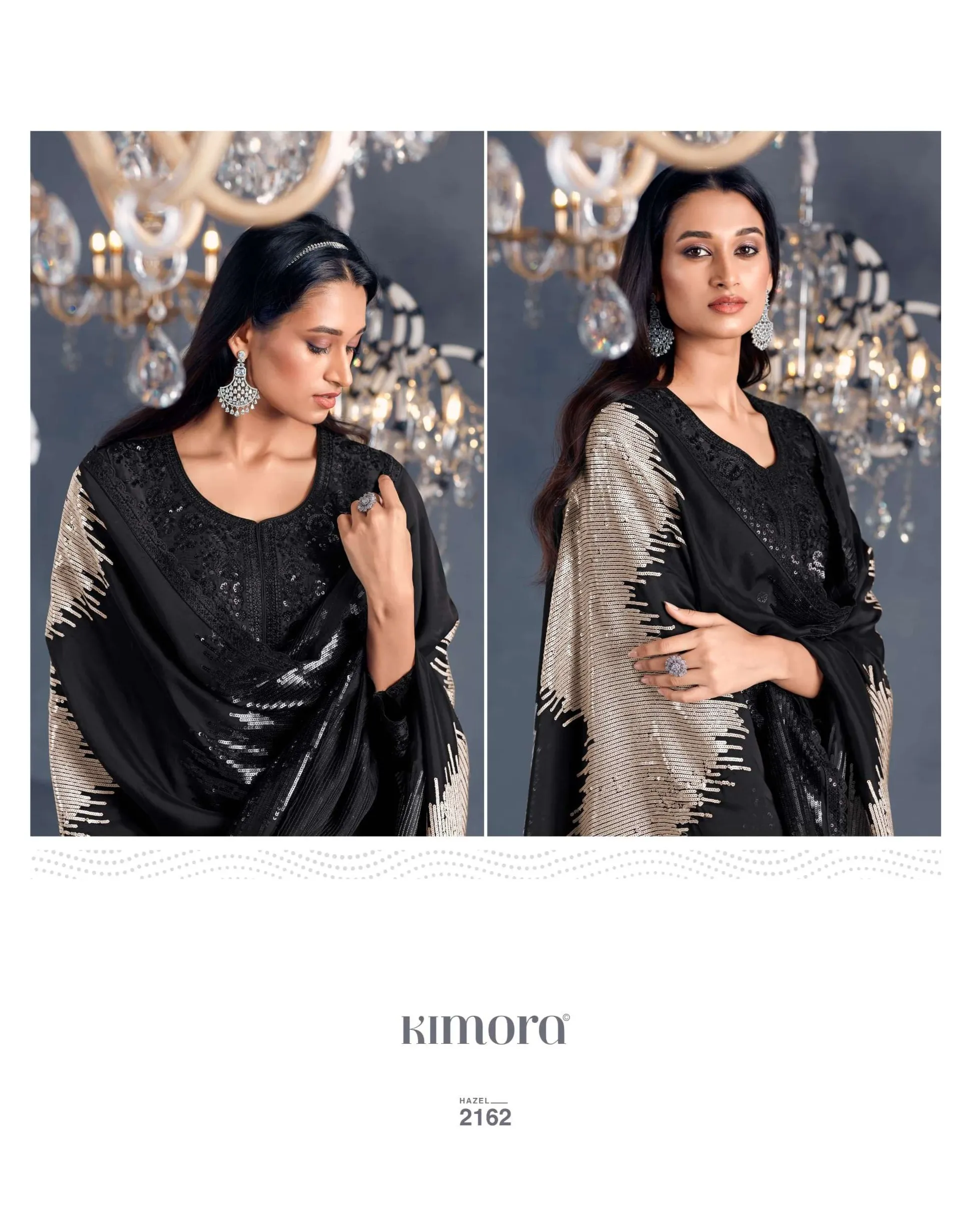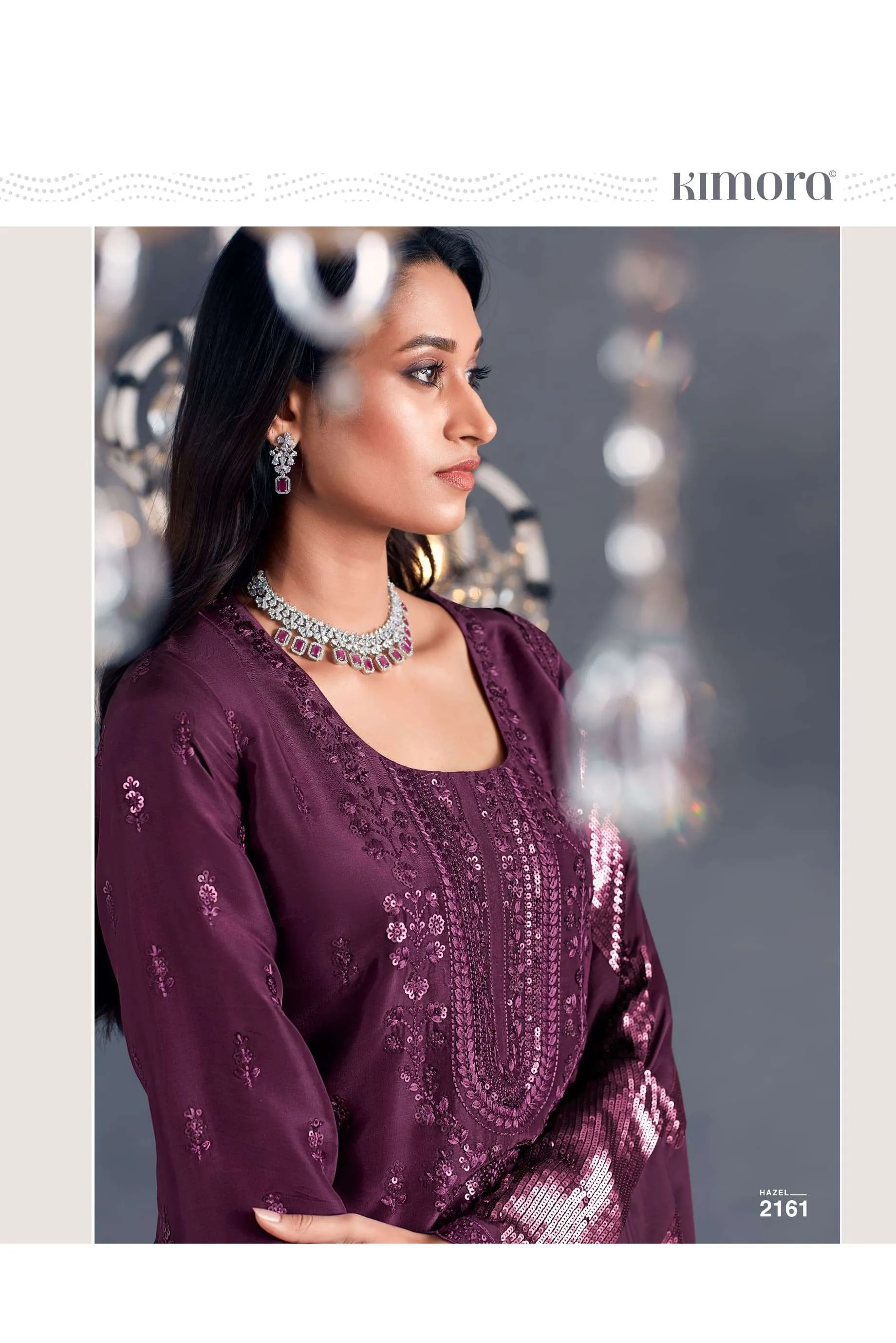 Pure Russian silk with toner thread & sequins embroidery, Scalloped embroidery on sleeves